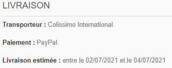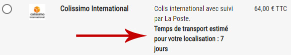 - le temps de transport vers votre destination selon le transporteur choisi